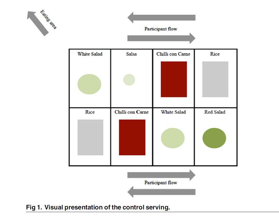 Les participants étaient exposés à l’une de ces trois mises en situation, et se présentaient également à une session témoin dans laquelle ils pouvaient se servir en salades composées présentées dans des saladiers (figure 4).