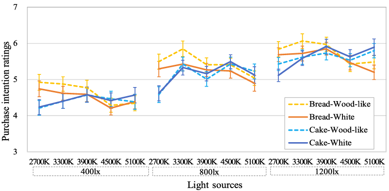 Selon les auteurs, ces résultats corroborent ceux d’études antérieures montrant que les produits de couleur chaude sont généralement jugés plus attrayants sous une lumière chaude (évoquant peut-être ici la cuisson ou le feu de bois pour les produits panifiés), et les produits de couleur froide plus attrayants sous une lumière froide (suggérant peut-être ici la fraîcheur des pâtisseries).